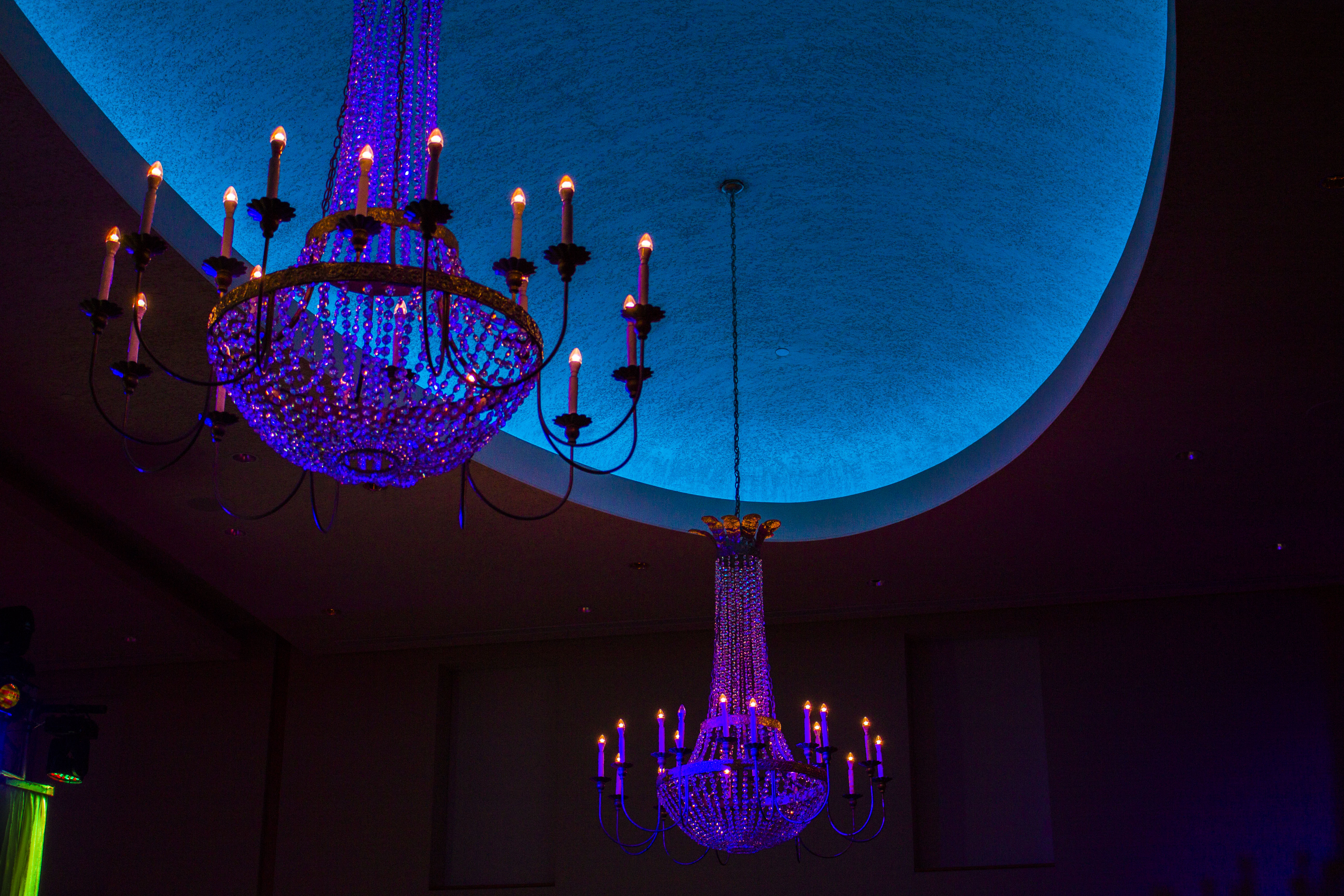 - blue, chandelier, indoor, violet, wash lighting